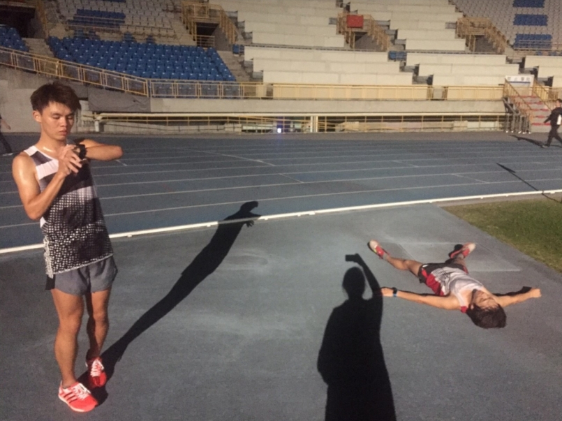 介紹完之後,我就要開始實地練習了。我先來介紹一下陪我練習,最近好像很紅,剛拿下2016高雄國際馬拉松台灣納波萬No.1,來自苓雅區的一位年輕小鮮肉-「肯亞殺手-鄭瑞竹」(照片左那位)。