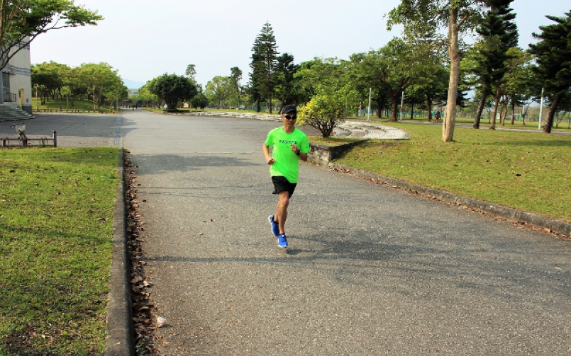 第一次實跑,選在柏油路面,主要測試 IGNITE DISC 在路況不一的情況下,是否能有高度穩定性,包含避震或緩衝。不料午後的天氣轉為悶熱,天空已經開始醞釀下雨的節奏,使得實跑一開始就有些心浮氣躁,不過在透氣網布的幫忙下,整整 10 公里並沒有濕氣難排、悶熱難耐的感受,鞋面與足弓依然貼合得好好的。再來是落地時,前足底的屈曲性與緩衝性不錯,隨著雙腳持續推進,足下傳來噠噠噠的規律聲音,跑了 5 公里後開始進入流暢的狀態,途經上下坡能充分展現 IGNITE DISC 在避震與緩衝的獨到之處。