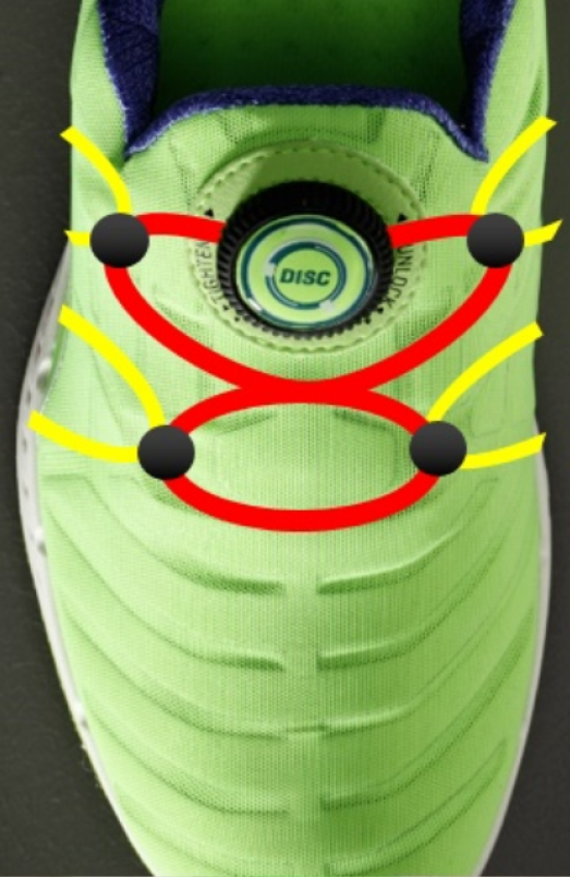 束緊是纜繩拉攏的效果,它雖有束縛的力量,但不會感到壓迫感。換句話說就是具有良好的延展性與彈性!當跑者穿上 IGNITE DISC 後,便能省去綁鞋帶的麻煩,並能夠更專心在訓練上,隨時依照自己的足部狀態調整鬆緊,例如進行 LSD 長跑時,雙腳因血液循環與散熱而自然腫脹,此時就能進行調整。比賽時也不用擔心會被其他跑者踩到鞋帶,少了一項需要顧慮的因素,有益無害。