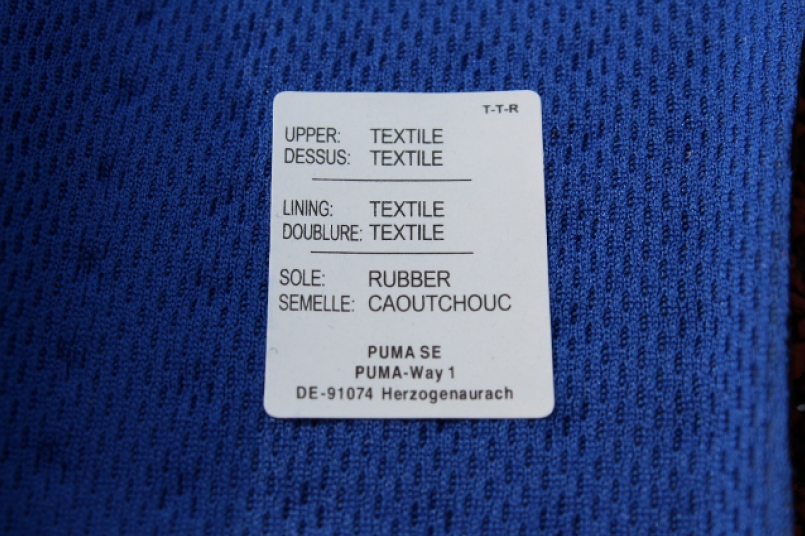 細看鞋墊上的小張貼紙,發現它載明了 PUMA IGNITE DISC 的各部位材質。