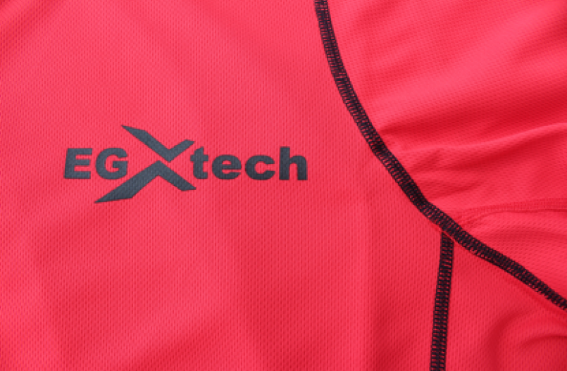 歐洲杯足球賽甫結束,喜歡足球的朋友們多少明白,球衣背後的膠字與背號是透過熱轉印技術印上去的,而 EGXtech EDS-3 隧道式單導排汗衣同樣採用了熱轉印技術,將其 LOGO 分別印在衣服正面左胸、衣服正面右上臂及衣服上背部。