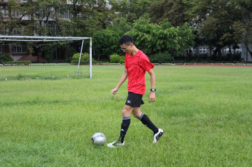 跑步之外,小智也喜歡踢足球。值得一提的是,EDS-3 的背部縫線幫助我在拿球轉身時提供了相對穩定的作用,側向的活動度更是沒話說。