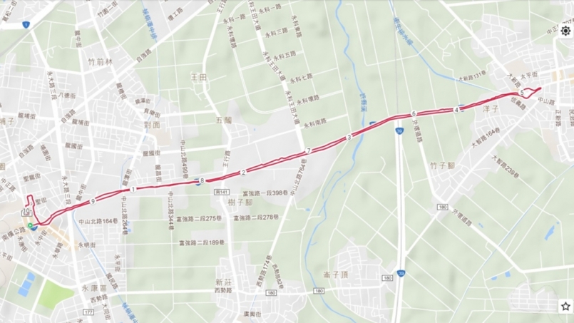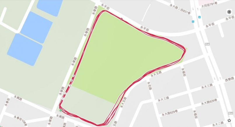 公園人行道實際測試,GPS定位圖(圖片來源:小智)