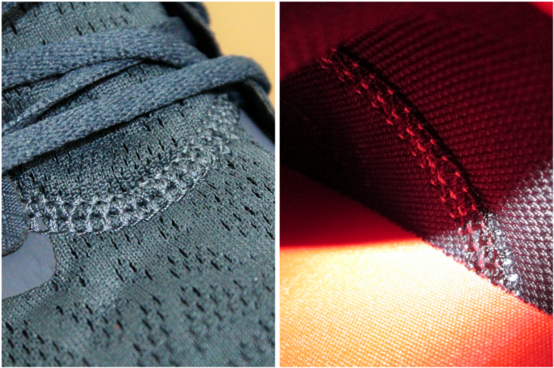 左:鞋面;右:鞋側內裡、U 型縫線(圖片來源:小智)