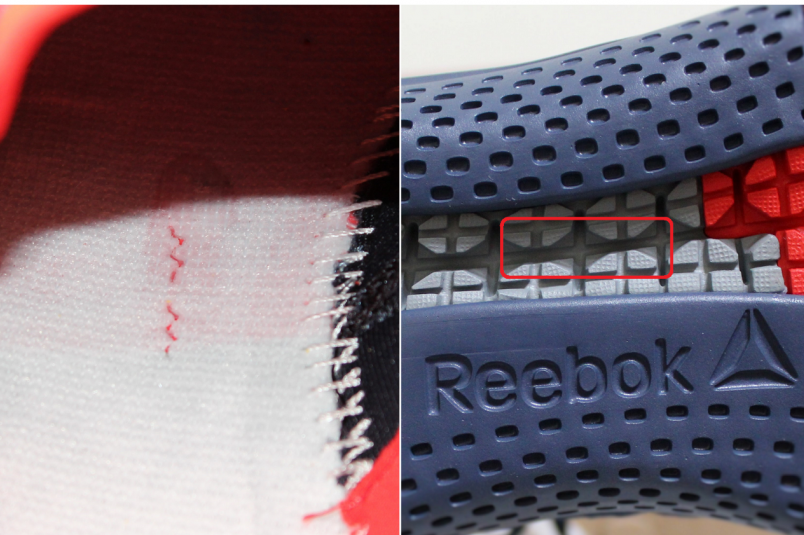 3D 列印的大底的主要材質採用俗稱的 EVA,是跑者們相當熟悉的字眼。整體鞋底採用精繪緩震設計,以 3 倍密度的泡沫外底提供跑者足部的落地緩衝。鞋頭以獨立裁片做收編,它能保護跑者在活動時的足部安全,在整體視覺上採用眾多的小凹格狀設計,Reebok 稱其為 360 度圍繞節點的網格設計,在其邊緣分別連接著鞋面的合成皮與前腳掌鞋底的部分。