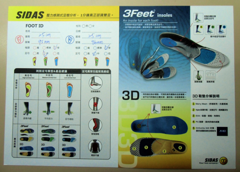 接著,SIDAS 的品牌足測人員將為你解說靜態足測的結果,並為你填寫個人足測資料卡,以供往後選鞋能列入參考。