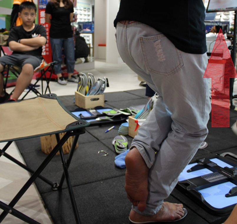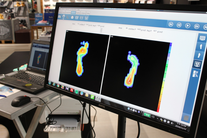 動態足測板透過感測器連續掃描 100 張足底壓力圖,並在最後平均結果顯現,可得到最精準個人化數據。
