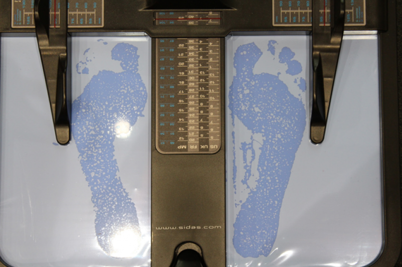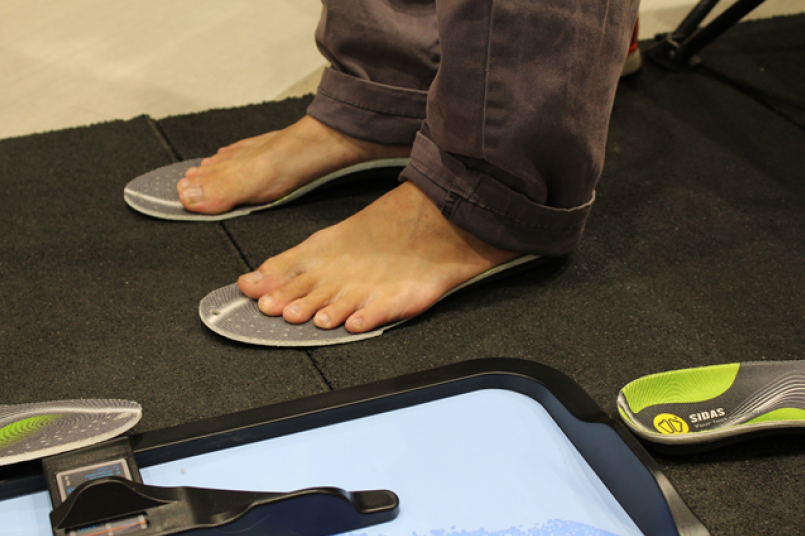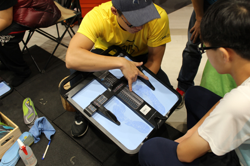 SIDAS 足測活動現場,壓力感測式靜態足測及電子足跡動態檢測板,現場更有全尺寸鞋墊樣品供測試者體驗(圖片來源:SIDAS)