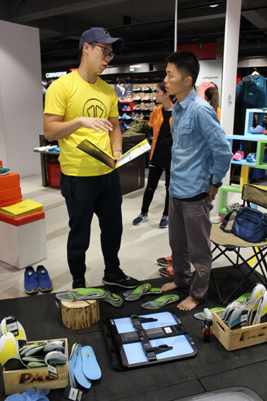首先,體驗者先至 SIDAS Facebook 粉絲專頁按讚,接著就可以進行足測。倘若時間充裕,建議是靜態與動態的足測都做,分析結果會更完整;足測結果會列印出來讓體驗者帶走,可供未來挑選鞋或鞋墊時的參考指標;最後就是實際將 SIDAS 鞋墊放入平時常穿的鞋內,試著來回走動或上下樓跑動,藉此更可以深刻體會 SIDAS 鞋墊所帶來的獨特魅力。