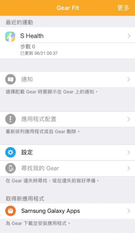 從 2017 開始,Samsung 的智慧裝置開放支援 ios 系統,筆者剛好是 iPhone,當然馬上下載 Gear APP 程式。可惜的是,在 ios 系統上有部份的功能會沒有,還是需要搭配 Samsung 的手機功能才會比較健全,像將音樂傳至 Gear 就沒有,但基本需求還是有的。