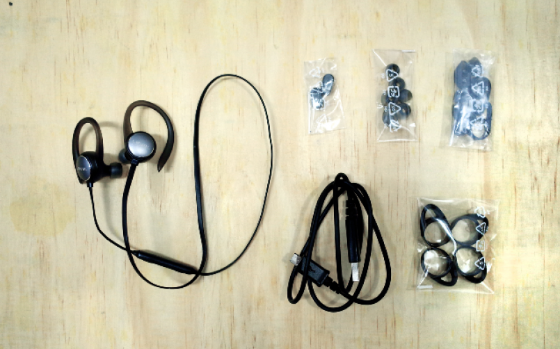 盒裝內附有說明書及 USB 傳輸線(充電用)、S / M / L 尺寸的耳塞、2 副耳內調整環及一對調整線的扣子,可依個人喜好及舒適度搭配多種尺寸選擇,讓你長時間配戴,依舊舒適!