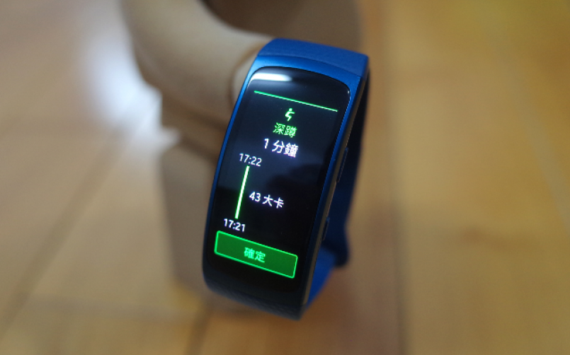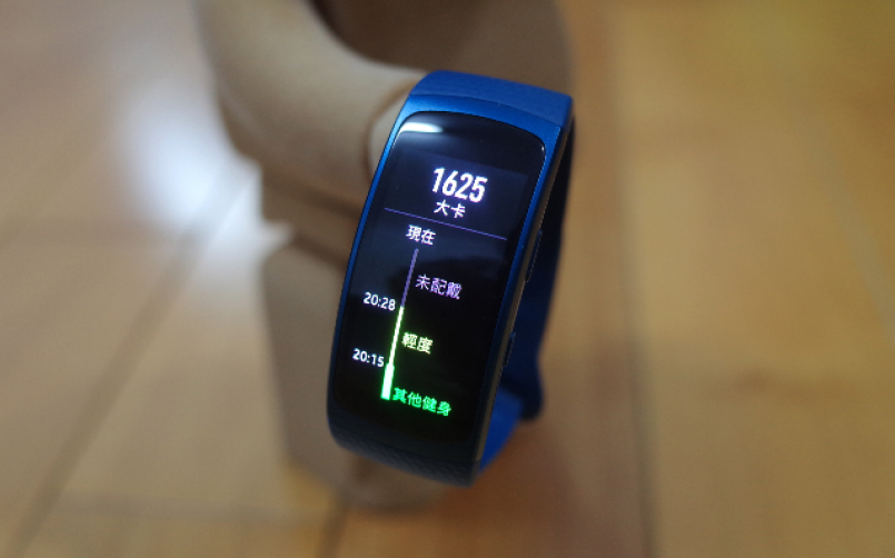 Gear Fit2 能自動辨識及記錄不同運動(走路、跑步、騎腳踏車)時的相關運動記錄,計算目前所消耗的熱量,並可從中分析是否需要運動了。