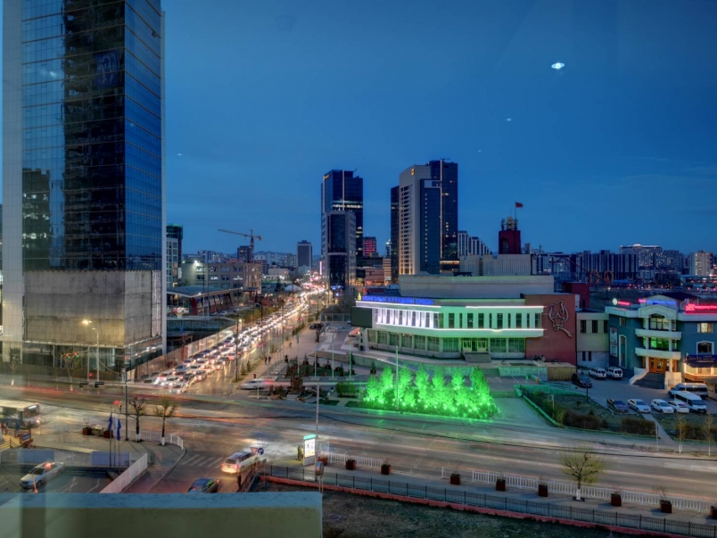 由於正式比賽近了,我們也逐漸向烏蘭巴托移動,一則先了解比賽場地;再則便於比賽當天清晨集合。烏蘭巴托(Улаанбаатар,英文:Ulaanbaatar),人口130萬(幾近半數蒙古人住在這裡),它有一些很美的現代化建築,還是台北的友好城市呢! 請看這是媲美杜拜帆船飯店的半月建築藍天大廈酒店。