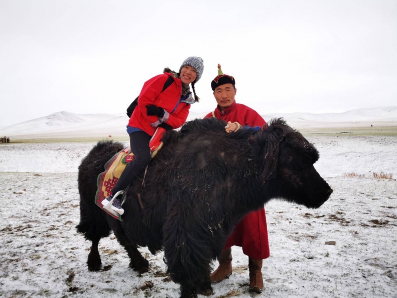 第三天(05/16, Thu): 上午是巴彥戈壁馬拉松;下午開車六、七小時去著名的「特勒吉國家公園」,那裏草原如因,山峰連綿,怪石嶙峋; 我們在那裏騎氂牛、駱駝,真不一樣的體驗。