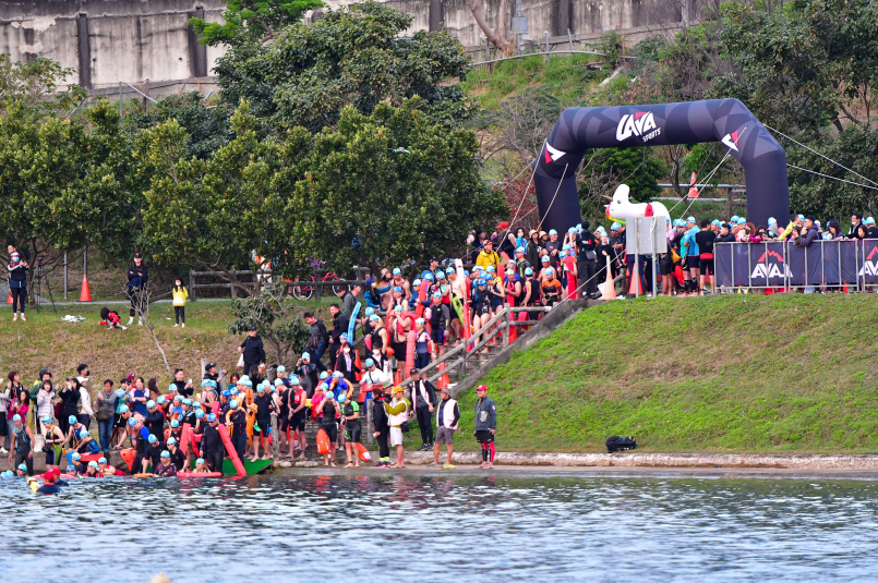 這次依然是擔任最有把握的游泳棒次,LAVA Tri和ironman一樣是採取rolling start的方式,不用大亂鬥真的很適合對開放水域有障礙的選手耶~就算真的不敢游也可以走岸邊(?) 最吸睛的莫過於這支獨角獸了,不知道明年會不會有什麼更浮誇的道具呢!