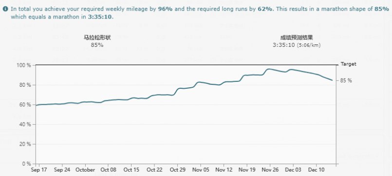 其實原本目標就放在2024,台北馬只打算拿來跑Long, 目標一樣維持免抽就好,所以一直到十月都還只有在有氧打底加上堆跑量。只是練著練著突然覺得不知道今年有沒有機會可以再次挑戰破四,雖然凱蒂一直沒有很願意讓我去拚成績,想了各種條件最後終於達成協議,我說那個大家都說很準超準非常準的runalyze如果覺得我能跑進3:50,那就讓我試看看能不能破四。然後有任何不舒服就放掉不拚了。
