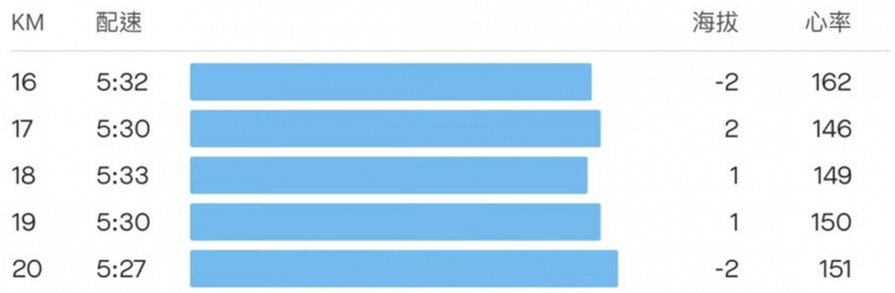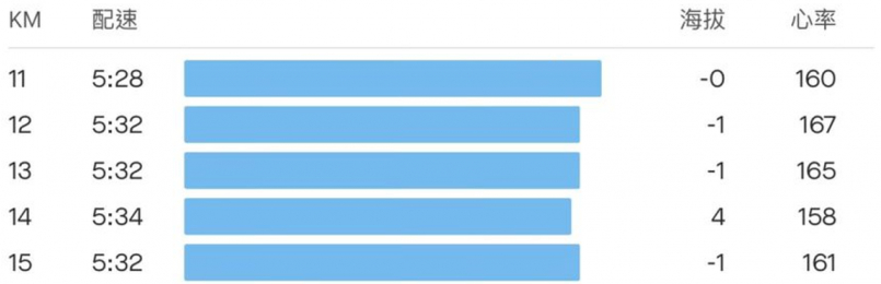 11K後開始加速到5:30-5:35