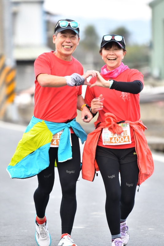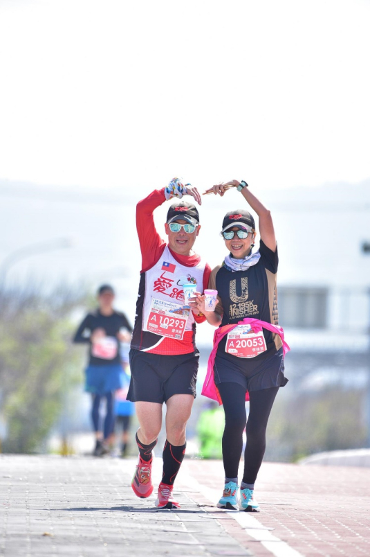 (2019/03/30香魚42馬拉松,小葉說:比個愛心,面對鏡頭越來越得心應手了!)