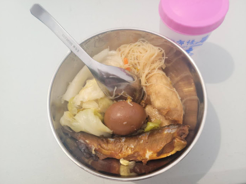 完跑後飢腸轆轆,大會貼心安排了大餐伺候,有美味的香魚、好吃的肉排、Q彈的滷蛋、清甜的高麗菜、好喝的貢丸湯、蘿蔔湯外加炒米粉及白米飯,我吃了一大碗公後,才帶著滿滿的飽足感回家。