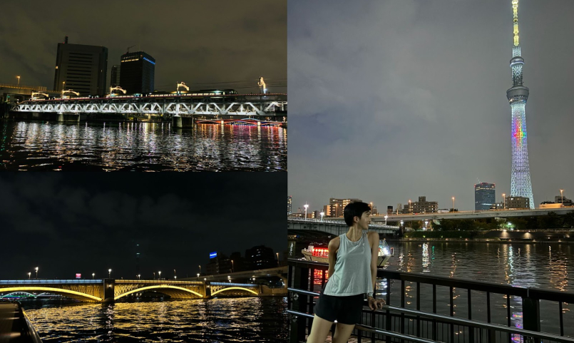 隅田川夜晚慢跑,穿梭在燈光閃爍的城市,每一步都揭露出東京的不同面貌。(照片來源:Teresa Pai)