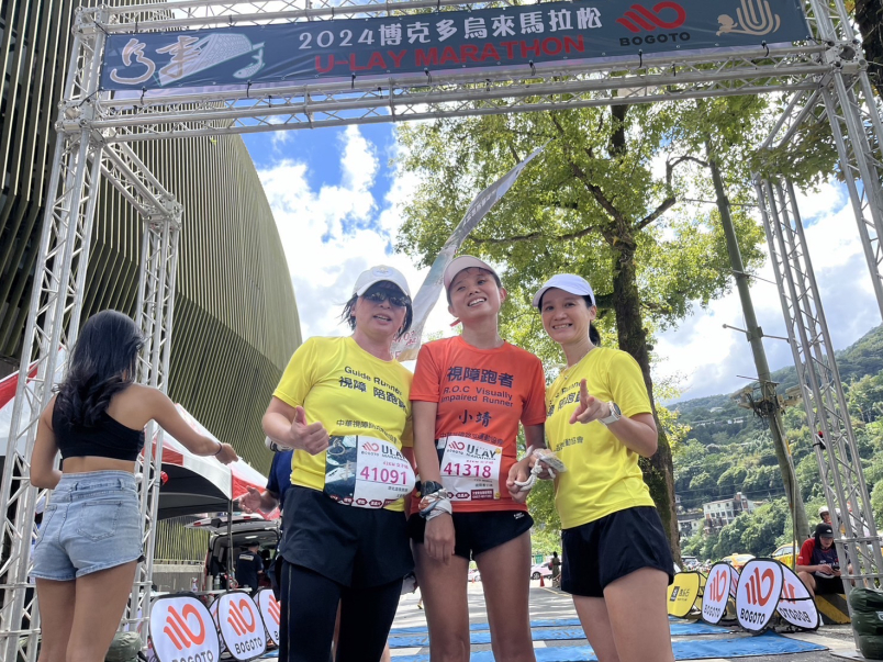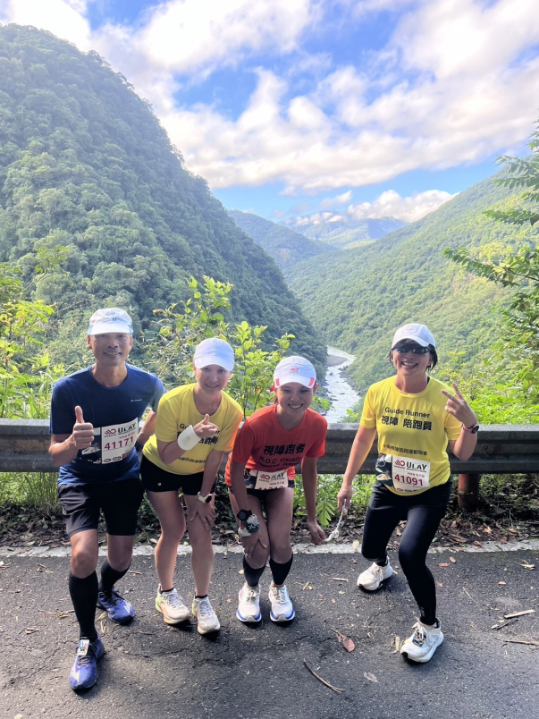 謝謝芳琳,還好有妳才能完成我的第一場視障跟跑,謝謝小靖的信任及勇於挑戰,我們花了六個多小時平安順利完成,謝謝沿途許許多多跑友的加油聲,賽道最美的除了沿途的美景還有歡樂陪伴以及相互鼓勵加油聲。
