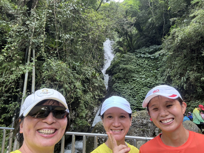 賽事當天一早不必擔心停車問題,下車後拍完團體照直接在寄物區與小靖及另一位陪跑員芳琳會合,這一場輕越野賽事對於我們兩個陪跑員而言並不陌生,芳琳跑過兩次而我跑過三次,風景不在話下,但對於視障跑者則是一大挑戰。