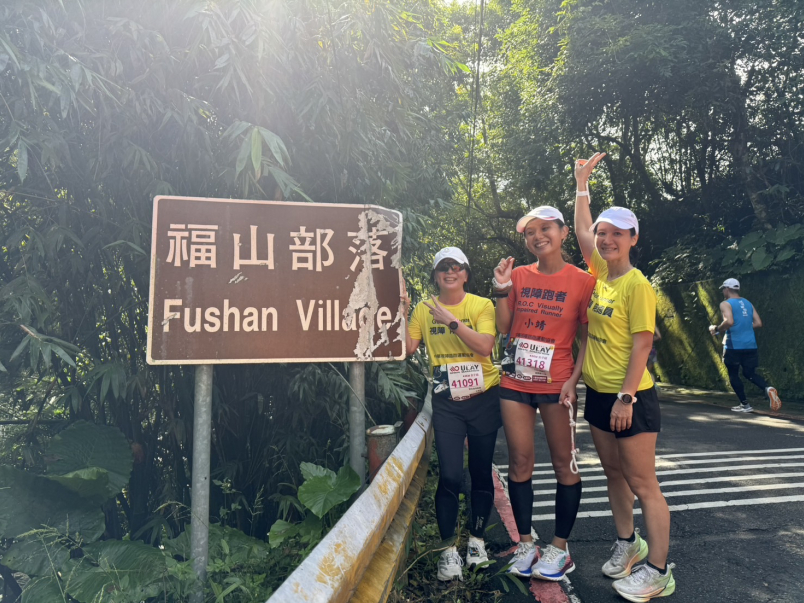 沒想到有一回小靖不經意說:富春你不是有報名烏來馬?我也有報名,有芳琳陪跑,你要不要直接第一次跟跑?妳們跑那麼快我跑那麼慢跟不上妳們啊?!小靖再三允諾烏來馬輕越野一定歡樂跑、慢慢跑,於是我人生的第一場視障陪跑賽事就敲定在十月六日的烏來馬拉松全馬。