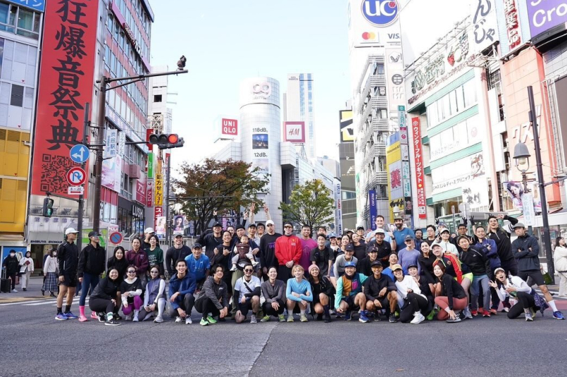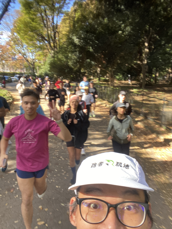 主辦方會用約五分半至六分半的速度帶著大家從代代木公園的大時鐘開始跑,從表參道跑到澀谷再折返回代代木公園,沿途會專人幫大家拍照與錄製影片,非常有趣。(請原諒我用我的爛手機邊跑邊拍的模糊照片)