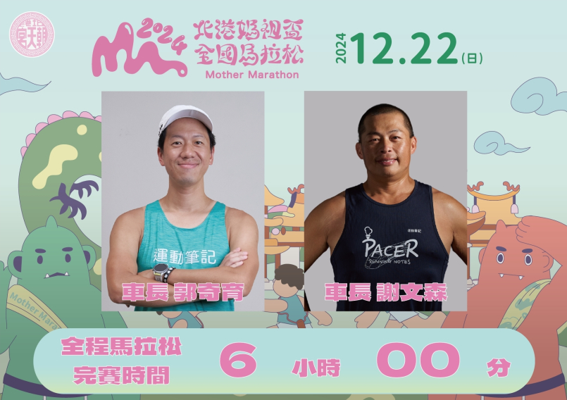 2024 Mother Marathon 北港媽祖盃全國馬拉松,此次配速任務由 - 運動筆記策畫與執行,協助所有跑者可以順利完成個人目標與挑戰。