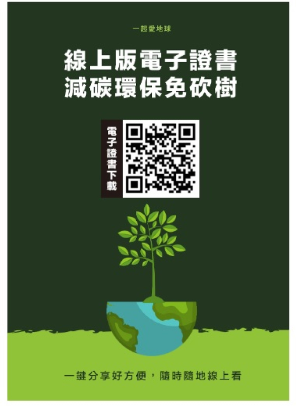 本賽事提倡減碳環保,故完賽後不提供紙本證書,全面改採電子證書方式提供,大會將於選手完賽後以簡訊方式發送電子證書下載網址至報名時所填寫之手機 (請務必填寫正確號碼,團體報名者建議請團長幫忙填寫上團員個人手機,以便當天收到完賽簡訊),大會也另提供線上查詢成績。