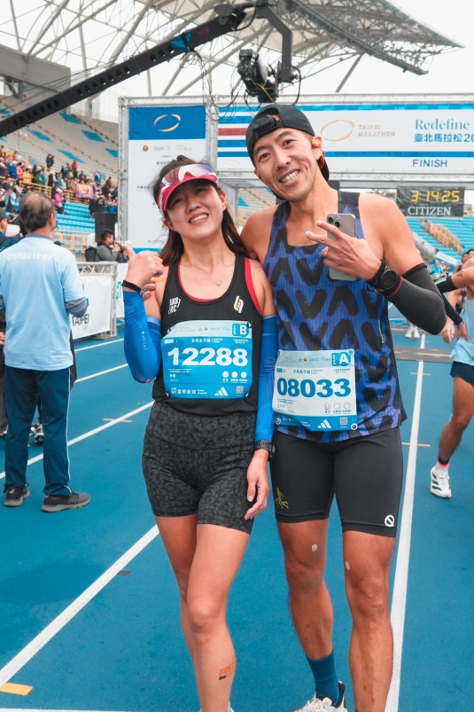 這次台北馬,老婆也一起參賽。雖然沒能完成賽前設定的目標 (308),但她也穩穩地3:13跑完了全程,這份堅持讓我特別感動。馬拉松本來就是這樣,有時達成目標,有時留下一點小遺憾,但不管結果如何,堅持到終點的過程,本身就是一場勝利!大家都要為彼此的努力而驕傲,也更期待未來一起跑得更遠、更穩。