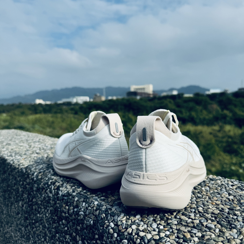 初見ASICS GEL-NIMBUS 27的厚底,以為會如同之前嘗試過的厚底緩震跑鞋般頗有重量,但實際上拿起後發現鞋重讓人驚歎。與上一代不同的是,27採用輕量工程緹花網布鞋面,提供高透氣性與完美合腳性,相當地包覆,舒適度極佳,同時減少額外的覆蓋材料,就算是夏日臺灣的炎熱濕悶氣候也可以駕馭,有效減輕鞋身重量;另外使用彈性針織鞋舌與後跟拉環設計,親膚性加,降低磨傷腳背的可能,也增加穿脫的便利性,對於跑步過程中有快速穿脫需求的跑者相當友善。
