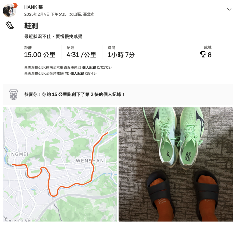 農曆年完的癡肥狀態,終於在開工的第二日有所覺悟 迎來第一次河濱15公里節奏跑實測