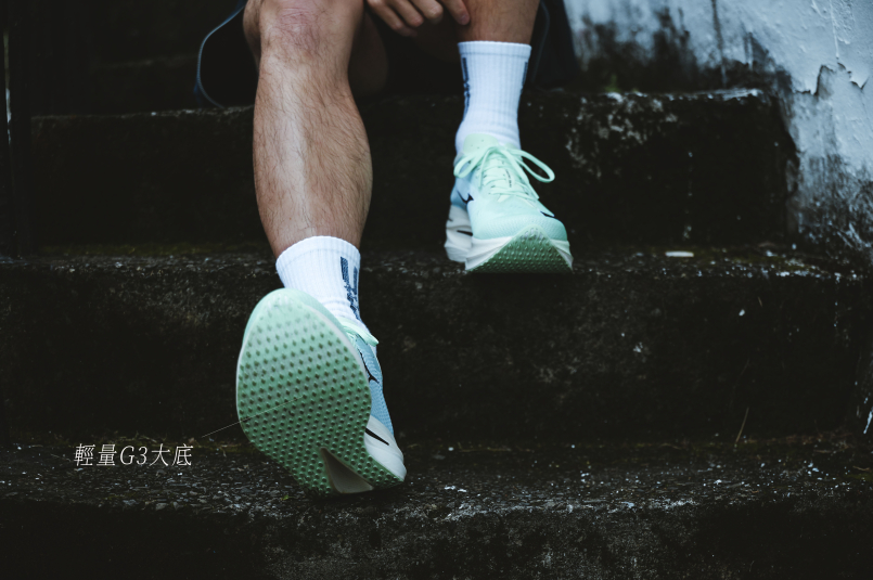 第一次穿這種設計的鞋款,我在落腳時間跟位置花了一些時間去適應與熟悉。以碳板鞋來說較重的配置,卻也讓我覺得更加的穩定。至於重量的部分,目前僅測到18公里,跑半馬絕對沒問題,但全馬就有待更多實測感受了。