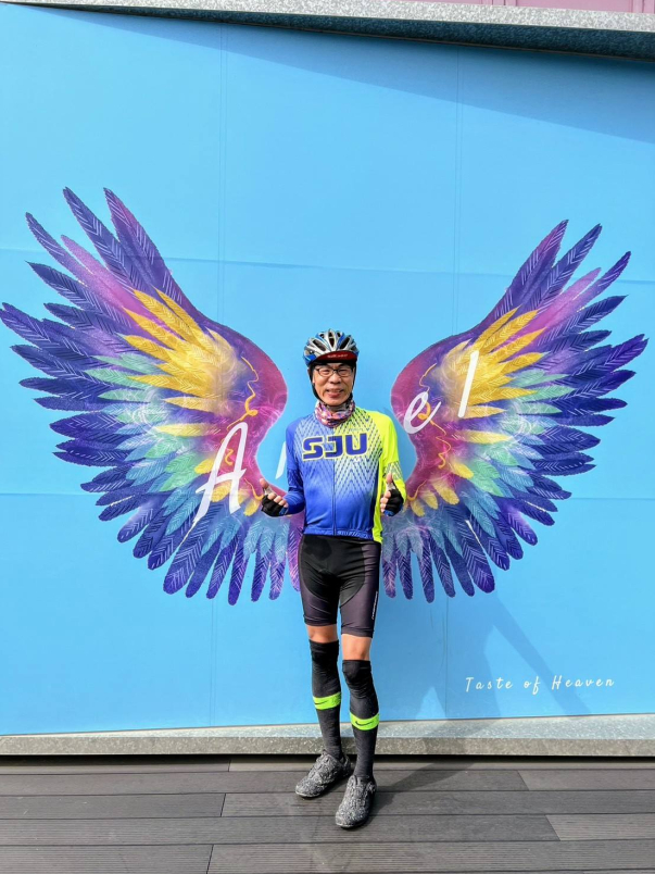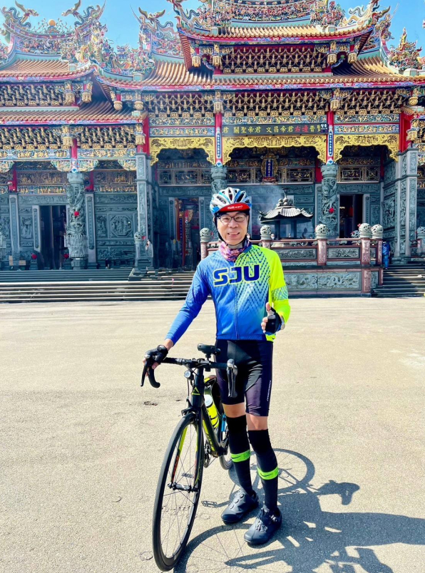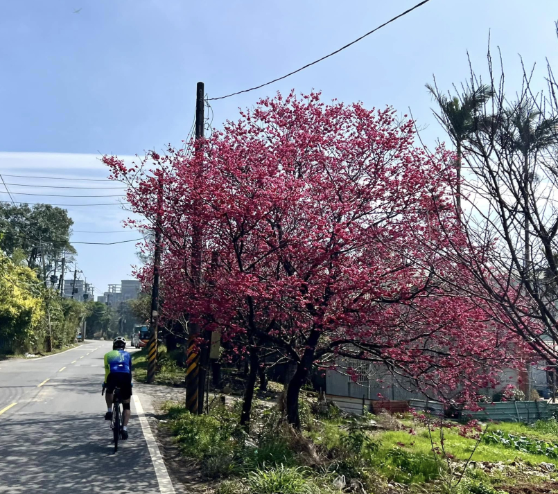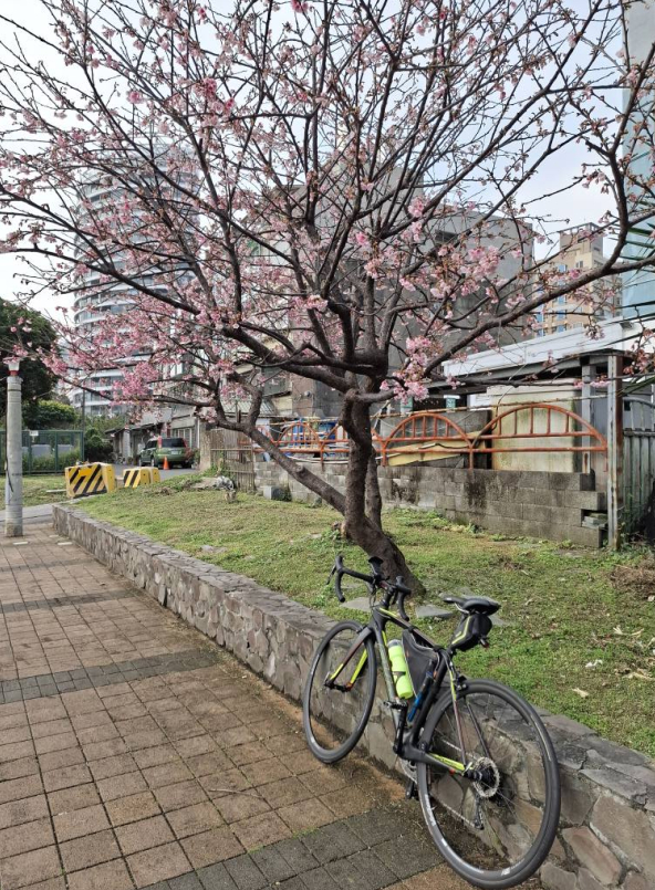 雖然途中我兩次遇到單車破胎及換胎的小插曲,但最後一行人仍順利沿著108線道騎往 #林口竹林山觀音寺,向觀音祈求新年平安順遂。校友們也在笑聲與美食中度過一個充實且難忘的假日上午。八里自行車步道美麗的櫻花