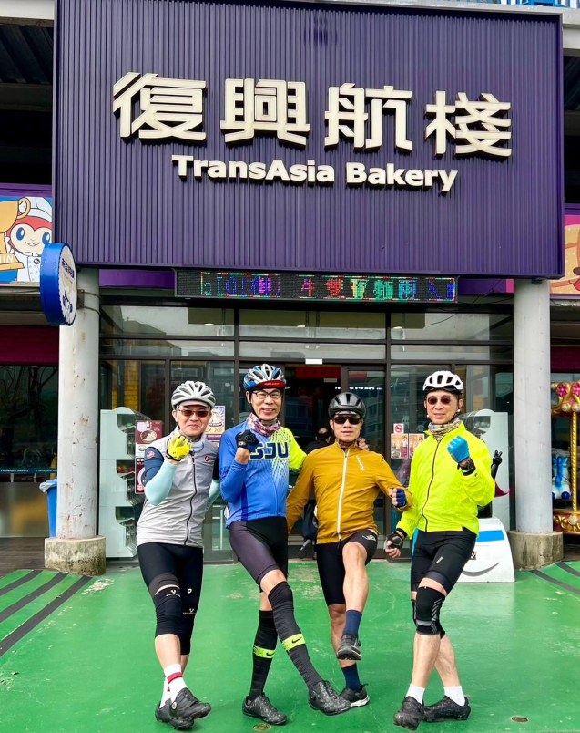 大家不僅在途中感受西濱沿線的懷舊風光,更在竹圍漁港品嚐當地知名的「 #全家福魚丸店 」,補充能量後繼續前行。抵達 #復興空廚 時,眾人還特地拍下「#飛翔翅膀」的網美照留念,紀錄這趟春日騎行的美好時光。