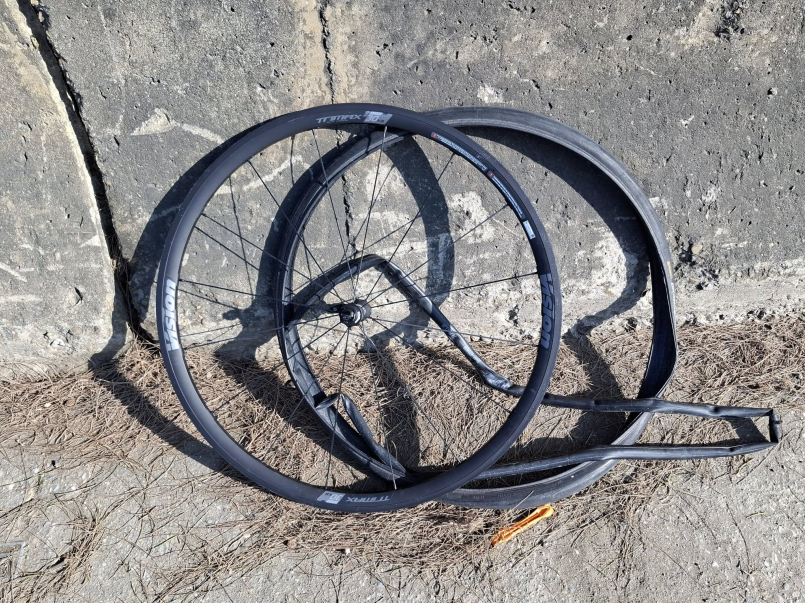 騎在西濱往竹圍漁港的路上前輪第一次破胎,還好有帶備胎可獨自完成換胎。