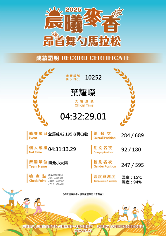 第13馬「熟悉的麥香最對味」~第13屆晨曦麥香昂首舞勺馬拉松