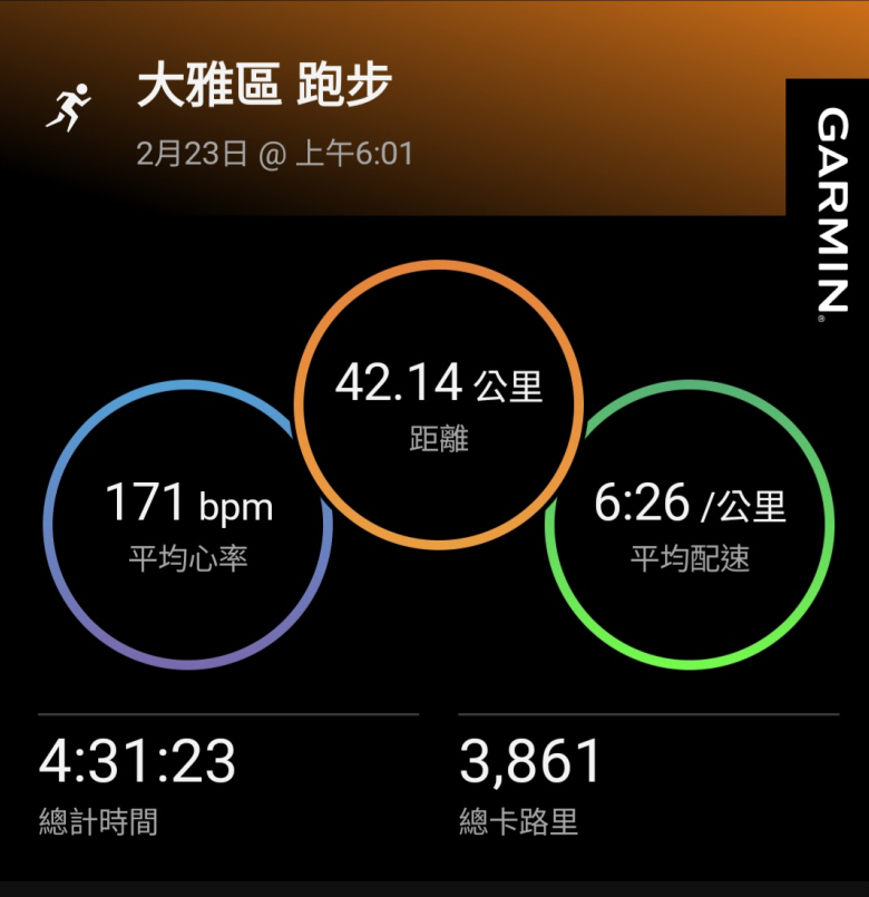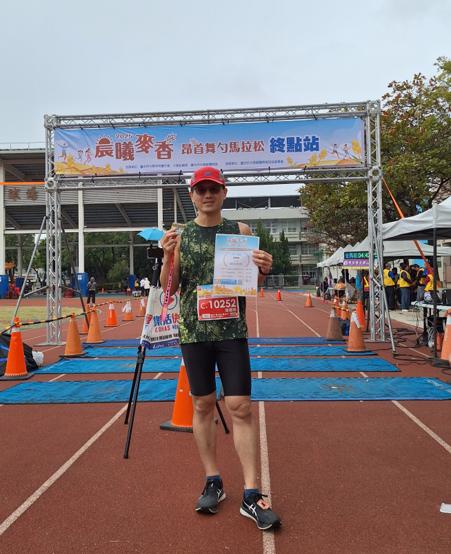 為了趕在晨曦前到會場,凌晨三點就從新莊出發,一路順暢地來到大雅國中停好車,再步行到大雅國小的會場,當日天氣體感溫度比預期中寒冷,又飄著細雨,即使賣力熱身,身體依舊無法順利開機起來。