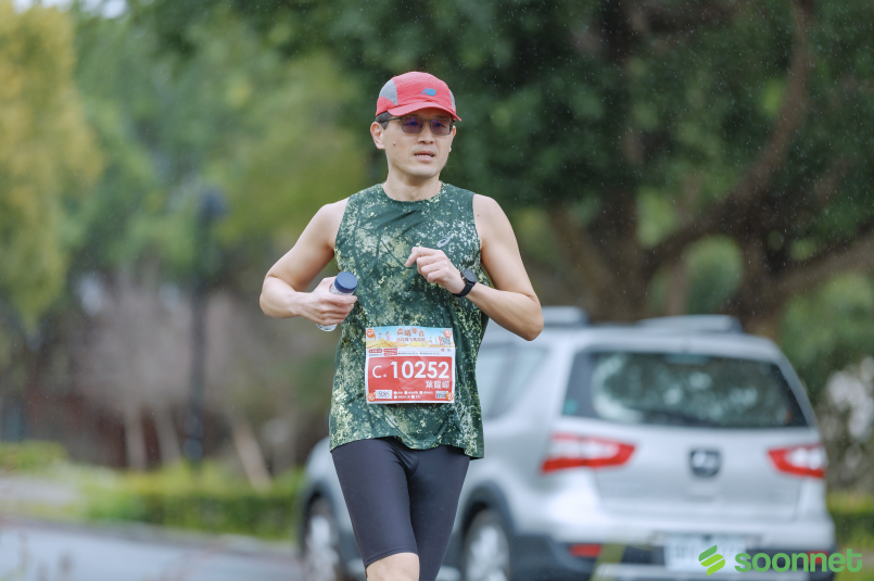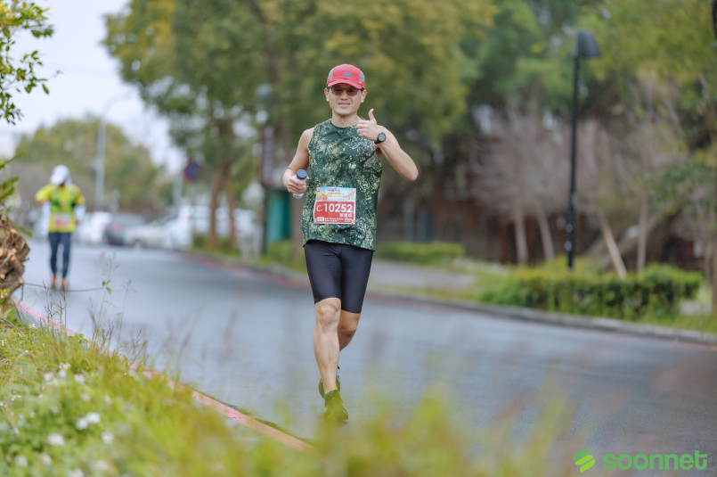全馬選手總是要多點體力、耐力與堅毅的特質,目送完12公里組與半馬組的選手通過分流點後,又要開始自我挑戰的過程。從空軍清泉崗機場門口開始往沙鹿區,就是一路上坡,雖然不如山路一般陡峭,卻仍消耗不少能量與肌力,獨跑時總是愛胡思亂想,沙鹿區的景象將我的思緒拉到約莫30年前,我從台南到台北念大學,高中好友有人讀靜宜大學和東海大學,大一時的聖誕夜,我先到靜宜大學找朋友夜遊,吃宵夜,隔天早上再一同到東海大學找另一個同學敘舊,時光荏苒,年輕歲月真好。回到現實,跑過台中航空站大門後,天色雲霧瀰漫,雨勢漸強,只穿背心與緊身短褲實在難受,陷入一種跑起來很累,停下來走又會冷的窘境,路線高低起伏不定,只能透過自我打氣與對話來撐過這痛苦的過程。