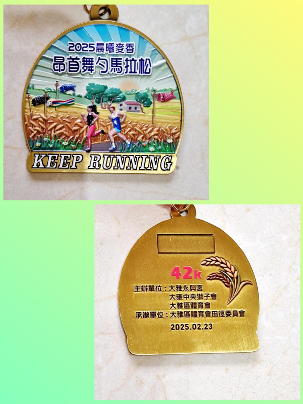 2025年的開工馬就從台中起跑,今年以來練習的一直都未能進入狀況,年紀越大越怕冷和淋雨,1、2月在跑步機上飄移的次數比實地道路還多次,加上腳傷疼痛偶爾會出來胡鬧一下,所以最遠的實地練習距離也只25公里,這一場的目標希望是平安順利賽就好。當初因為賽事名稱有「麥香」二字才報名,原本天真地以為會提供麥香系列的飲品,仔細研究後才發現是場誤會。