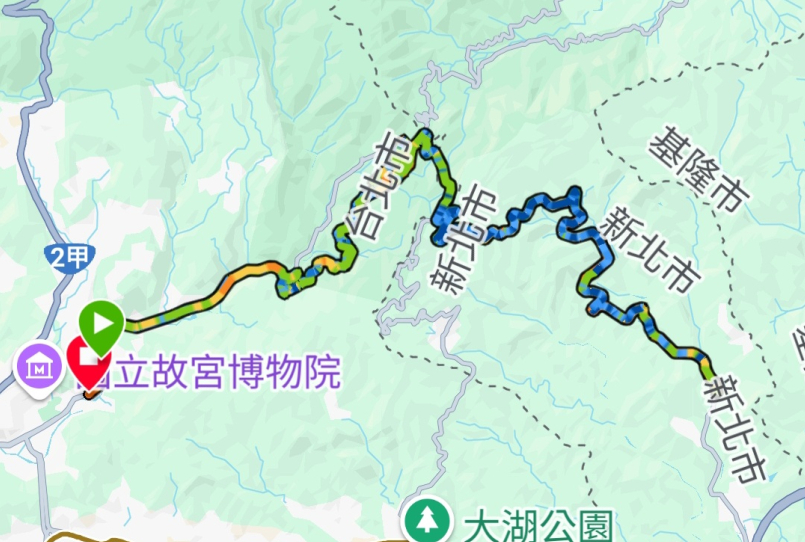 鳴槍後,從校門口右轉接至善路出發,一開始就是上坡,坡度和緩,體感仍偏冷,慢慢推進讓身體熱起來,準備迎接更大的挑戰。右轉進楓林橋,進入雙溪產業道路,才是真正的考驗。蜿蜒的山路、陡峭的坡度,讓人氣喘吁吁,越爬越高,本想一覽台北盆地美景,卻只見雲霧繚繞,別有一番風情。看到斗大的「佛」字,就知道風櫃口快到了。這是此次賽事的最高點,前段10公里上坡結束,接下來是快樂的10公里下坡。離開陽明山國家公園後,轉入汐萬路,這段風勢更強、氣溫更冷,幾度需要手扶帽子才能不被吹落。