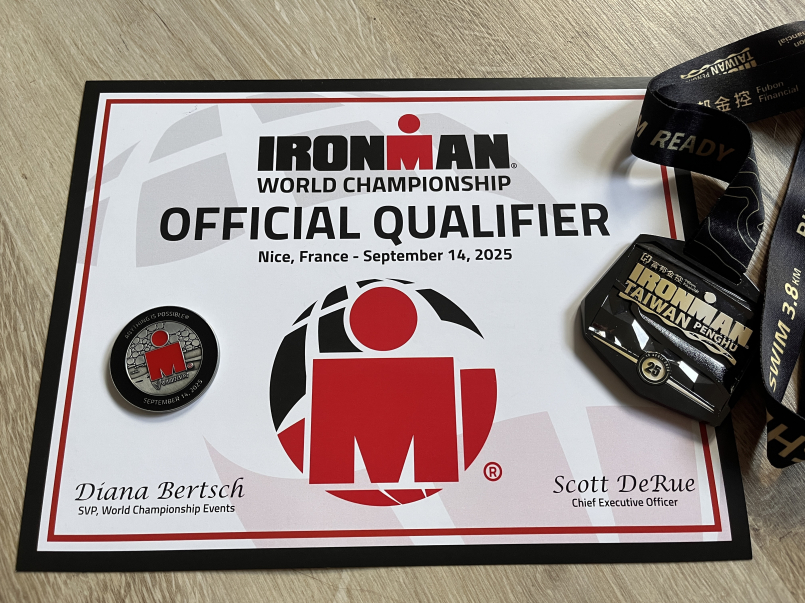 賽後,小白告訴我~自己是分組第九名,內心掩不住雀躍!!真的嗎?真的嗎?...我可以去法國NICE比賽了耶!!滿心歡喜的跳來跳去,不像剛比226完賽的自己。隔天走上台領過參賽權的那一刻,我真的覺得自己很驕傲,我辦到了,以正取名額,取得夢寐以求 IRONMAN 世錦賽資格,此趟澎湖無憾了!!