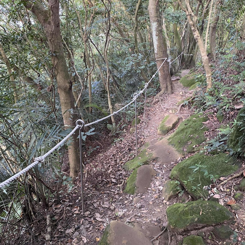 接下來前往鳶山的山徑變得比較有「登山」的感覺,不過若是遇到路徑傾斜或路面較小等危險的路段,一旁都會有欄杆圍繩協助山友通過