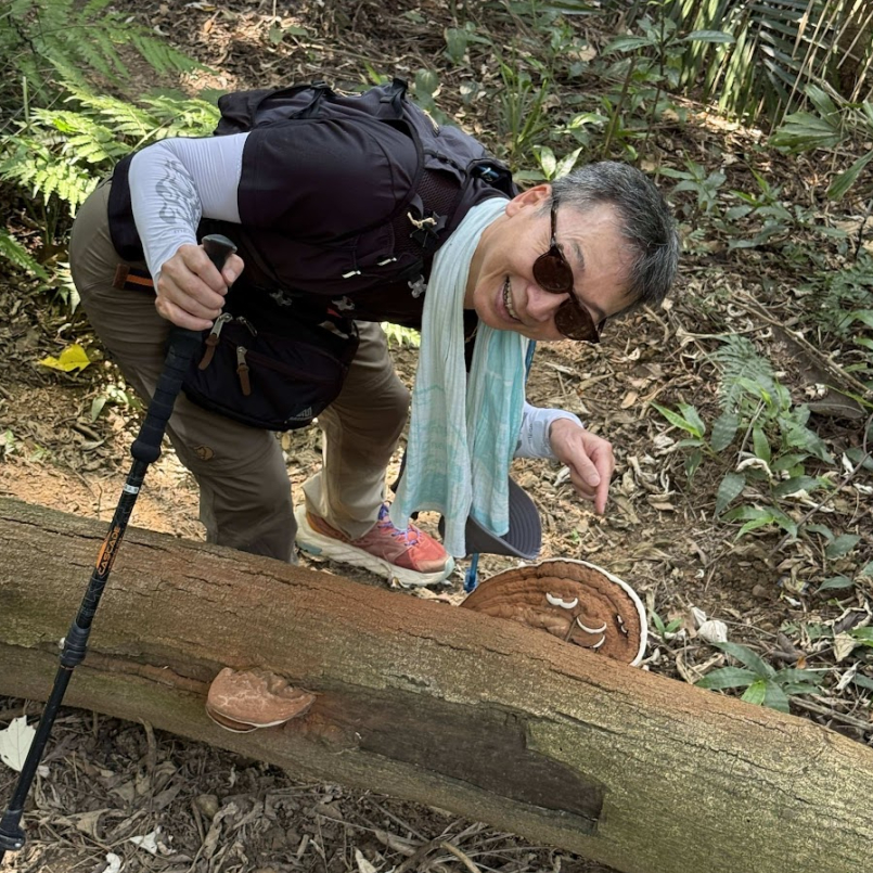 走著走著,橫跨山徑的倒木上竟然長出那麼大的一片野靈芝,這該不會是條人跡罕至的路徑吧!?