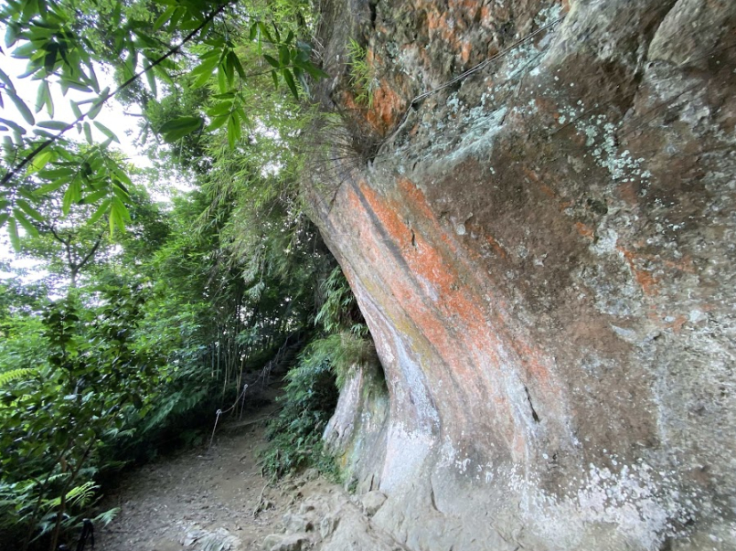 鳶山彩壁段的山徑部分,沿路樹木扶疏幾乎都是走在樹蔭之下,縱然此時太陽升起陽光四射,但徜徉在鳶山的樹林裡,並不會覺得如何燠熱,反而時有徐徐微風吹過