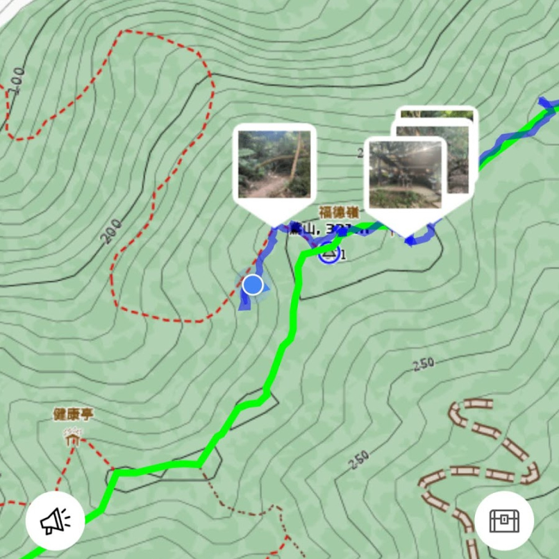 過了鳶山沒多久,遇到岔路一定要留神,之前看著 APP 尋寶任務路線圖,明明就是一路直行,結果順著路竟然一路下行,心中突然覺得怪怪的,再次拿出手機查詢,果然走錯路了,只好無奈爬坡上行回到正確的路徑