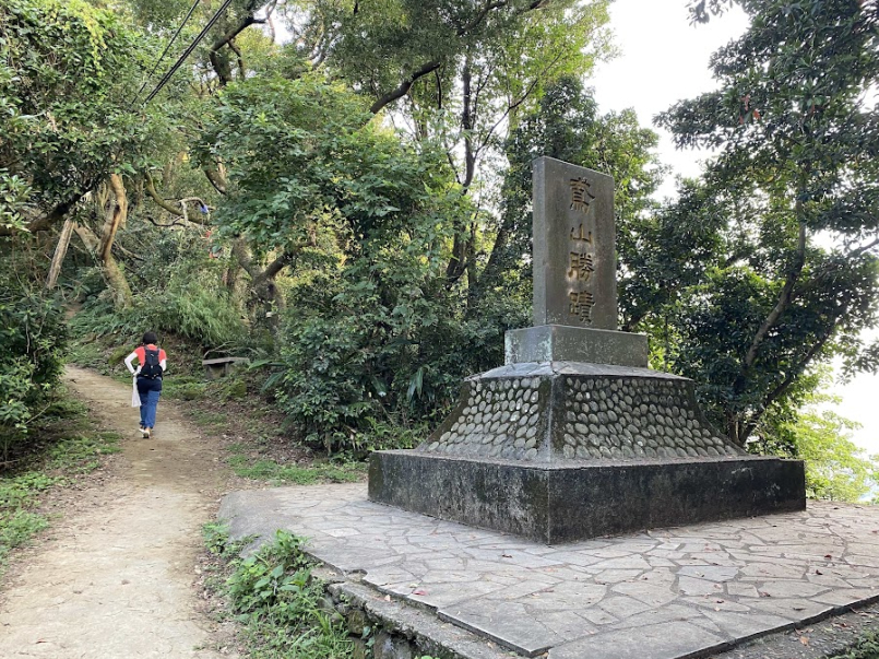 步入登山口之後,可見步道右側立著一塊「鳶山勝蹟」碑,石碑背面描寫著鳶山名勝的由來與當地事蹟
