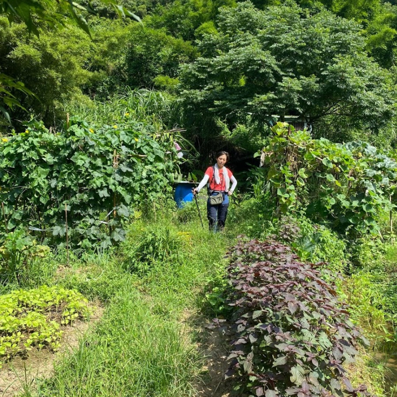 經過與大自然一番鏖戰之後,走出來的地方竟然是一片菜園,看看手錶此時 09:25,原來鳶尾山步道入口真的是設於這片菜園前