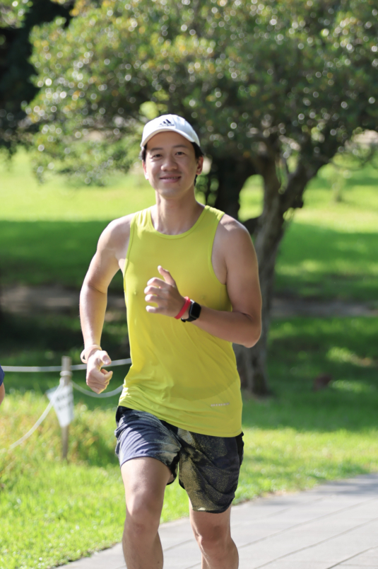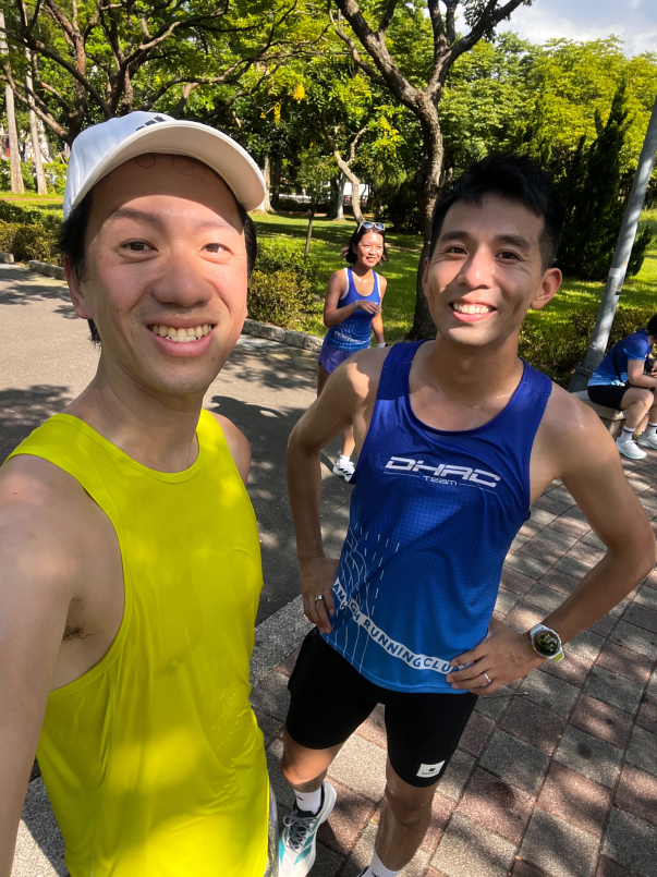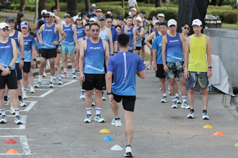 一開始是由DHRC的助理教練帶操,接著把隊伍拉去安森的舞台區做馬克操。過程大概15~20分鐘,動作非常扎實,我以為當天會跑個10K或半馬? (大誤)